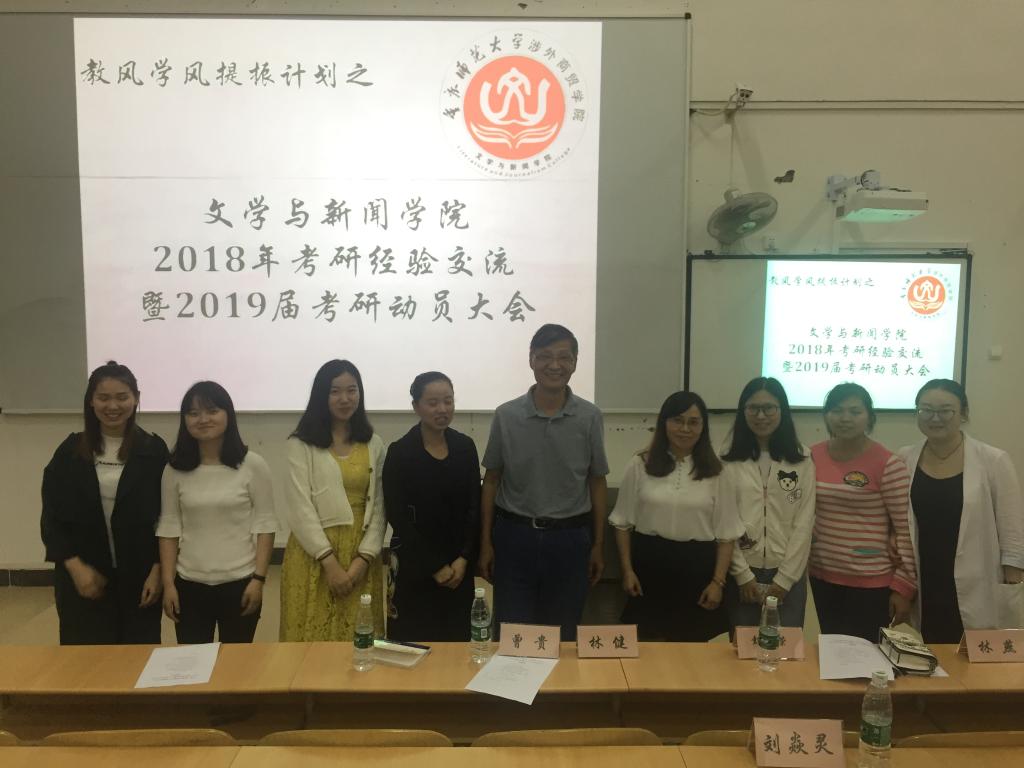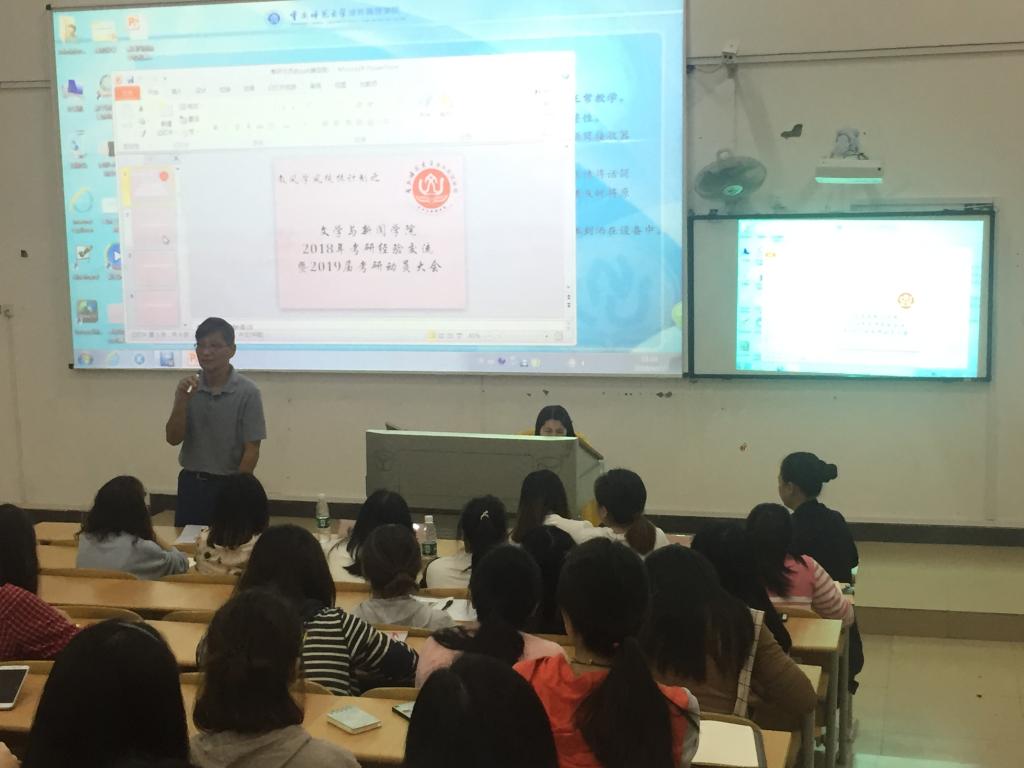 2018年4月22日19点重庆师范大学涉外商贸学院6310教室,文学与新闻学院在此举办了2018年考研经验交流暨2019届考研动员大会。
