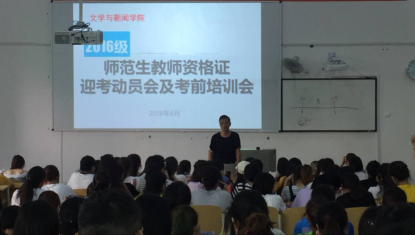 为了激发我院学生学习的积极性,使学生更加了解教师资格证的流程和具体内容,为了2016级同学能够更好地参加教师资格证国考,为其打下基础、做好准备,我院于2018年6月26日晚19:00在6510教室举办了2016级师范生教师资格证迎考员会及考前培训会。