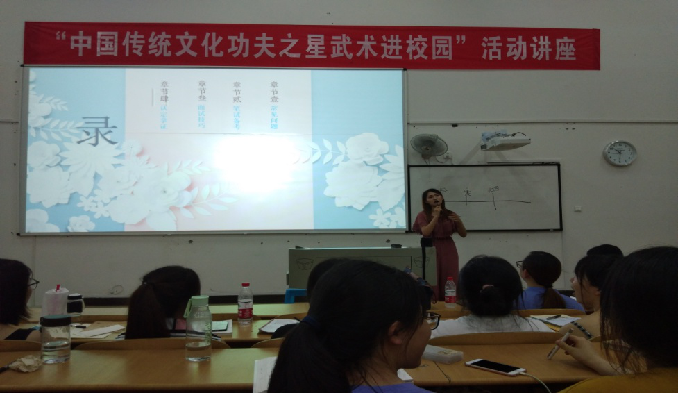此次大会,我们还邀请了已经考过教师资格证的外国语学院2014级应用英语陈生娅学姐为学弟学妹们作经验之谈,陈生娅学姐从笔试、面试、礼仪等方面以幽默风趣的方式讲解了她考教师资格证相关经验及注意点,还为学弟学妹们提供了更多的网络学习渠道。