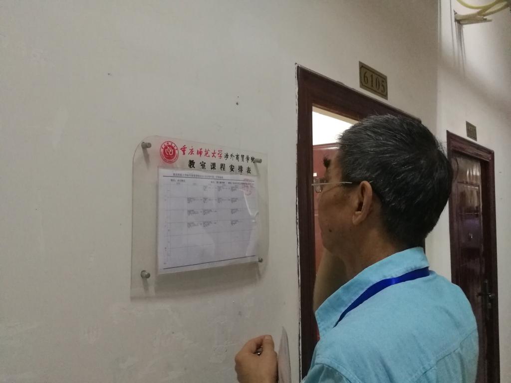 2018年9月6日,重庆师范大学涉外商贸学院迎来了新学期的第一次上课。我校常务副校长王乃武、校党政办公室主任徐高文以及文学与新闻学院院长林健、党总支书记何杨波、副院长王杨丽等各位领导对学院开学的各项工作进行检查、指导。