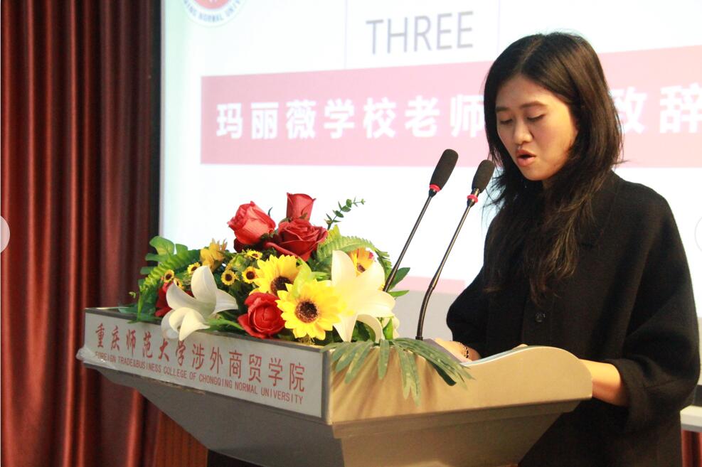 2018年10月9日上午10:00,我校在合川校区隆重举行仪式欢迎泰国玛丽薇学校访学师生。校党工委书记兼副校长马文华、文学与新闻学院院长林健、盛唐文化教育集团董事长唐小冬、国际交流合作处处长刘用、文学与新闻学院党总支书记何杨波,副院长王杨丽、泰国玛丽薇学校带队教师雪茹以及文学与新闻学院全体辅导员、赴泰专业实习学生和各年级学生代表共计一百多人参加了本次大会,合川电视台全程进行了报道。