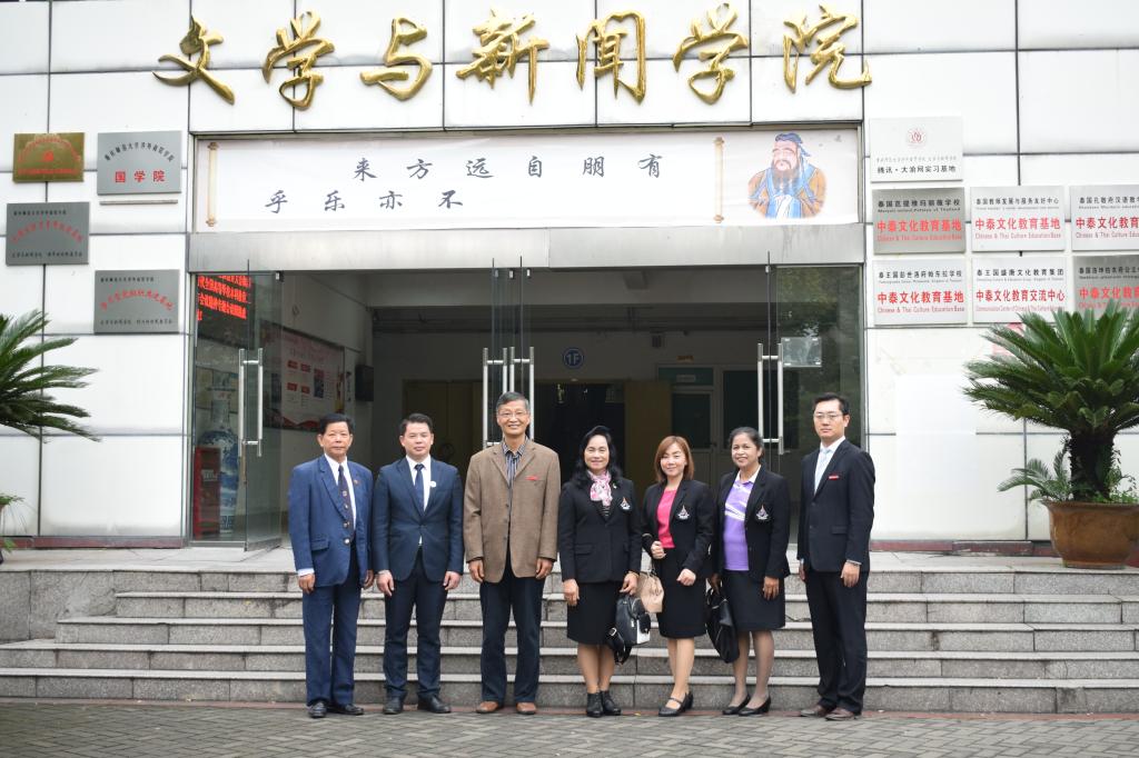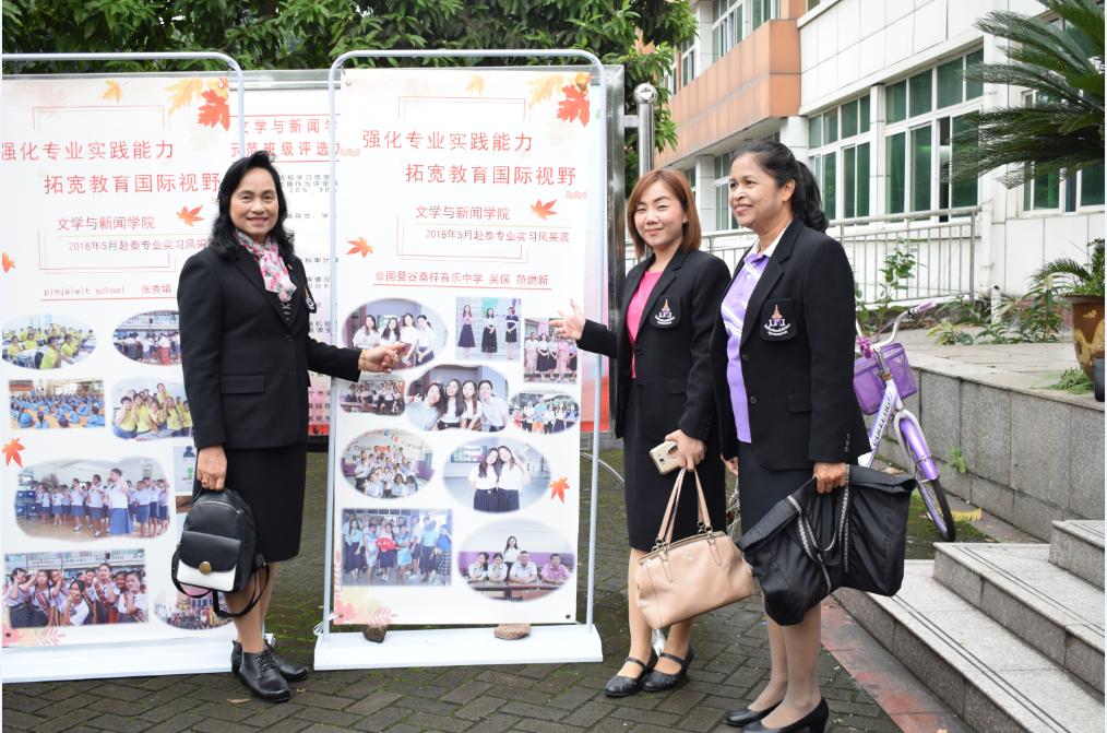 桑梓音乐中学是全泰国唯一的一所御赐艺术类专长中学,桑梓音乐中学校长Mrs.PRANEE不仅对我校中泰合作办学非常感兴趣,还对我校为中泰合作付出的努力给予肯定并表示感谢。Mrs.PRANEE校长表示接下来会有来自桑梓音乐中学的学生来到我校学习中文,也希望我校能派更多优秀实习老师到泰国教授中文,期待双方在原有基础上进行更深入、全方位的合作。