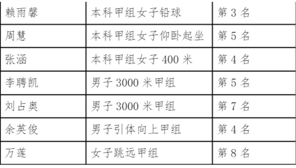 文创学院师生在下午的田赛、径赛预赛中取得优异成绩,预祝他们在后续赛事中再获佳绩。以下是在4月15日下午预赛中进入决赛的老师和同学: