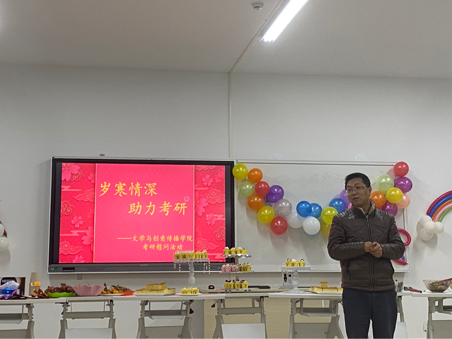 活动伊始,院长林健教授上台发言,他表示自己对同学们坚持不懈,认真努力,刻苦学习的行为感到自豪,嘱咐同学们在最后时刻一定要注意身体,强调保暖、保温,预祝同学们取得优异的成绩。党总支书记何杨波上台表达了对考研同学们的期望,希望各位学子们做最后的冲刺准备,力争实现自己的考研梦想。同时提醒同学们劳逸结合,调整状态,放平心态,积极应考。相信同学们熬过寒冬腊月,待到来年春暖花开时,好消息必定纷至沓来。