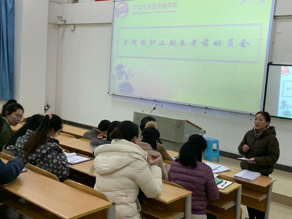2020年12月24日下午2:00,文创学院在合川校区6116教室召开了全院教职工期末考前动员大会,林健院长、何杨波书记以及全院教职工参加了本次会议。