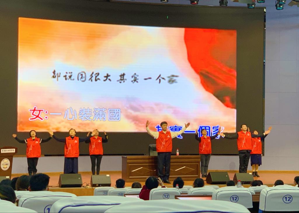 活动伊始,陈副院长对我院的国学院、国学经典阅读体系、国学课程、对外的国学系列活动,以及我院的国学+创新人才培养实验班分别做了介绍。紧接着,重庆弘道国学研究院志愿者代表挥舞着国旗、上台表演了手语舞《国家》,他们把志愿者精神与爱国歌曲完美融合,这场精彩的手语舞表演赢得了同学们的热烈喝彩。