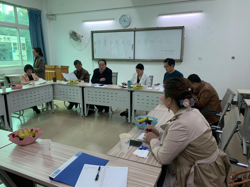 4月8日14:30,中泰合作项目专项研讨会在学院6107顺利召开。学校常务副校长王乃武、国际交流处处长刘用、外语外贸学院党总支书记张远鹏,文创学院全体领导班子、国际交流处老师以及对口老师参与会议。