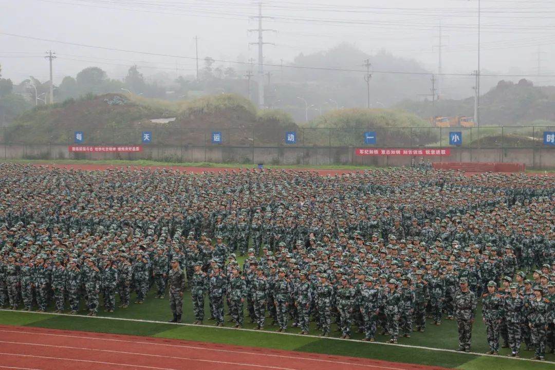 今天的天气并不理想,乌云夹着雾气遮挡住了阳光,微风夹着细雨洒在操场,但却遮不住文创学子们青春的光彩,浇不灭文创学子们心中的熊熊烈焰。也许我们曾都是温室的花朵,稚嫩的雏燕,而今我们却将屹立于风雨之中,洗去娇气,收起散漫,以军人的尊严与责任心严格要求自己,用汗水去书写我们的军训生涯,在文创学院绽出最美的花。