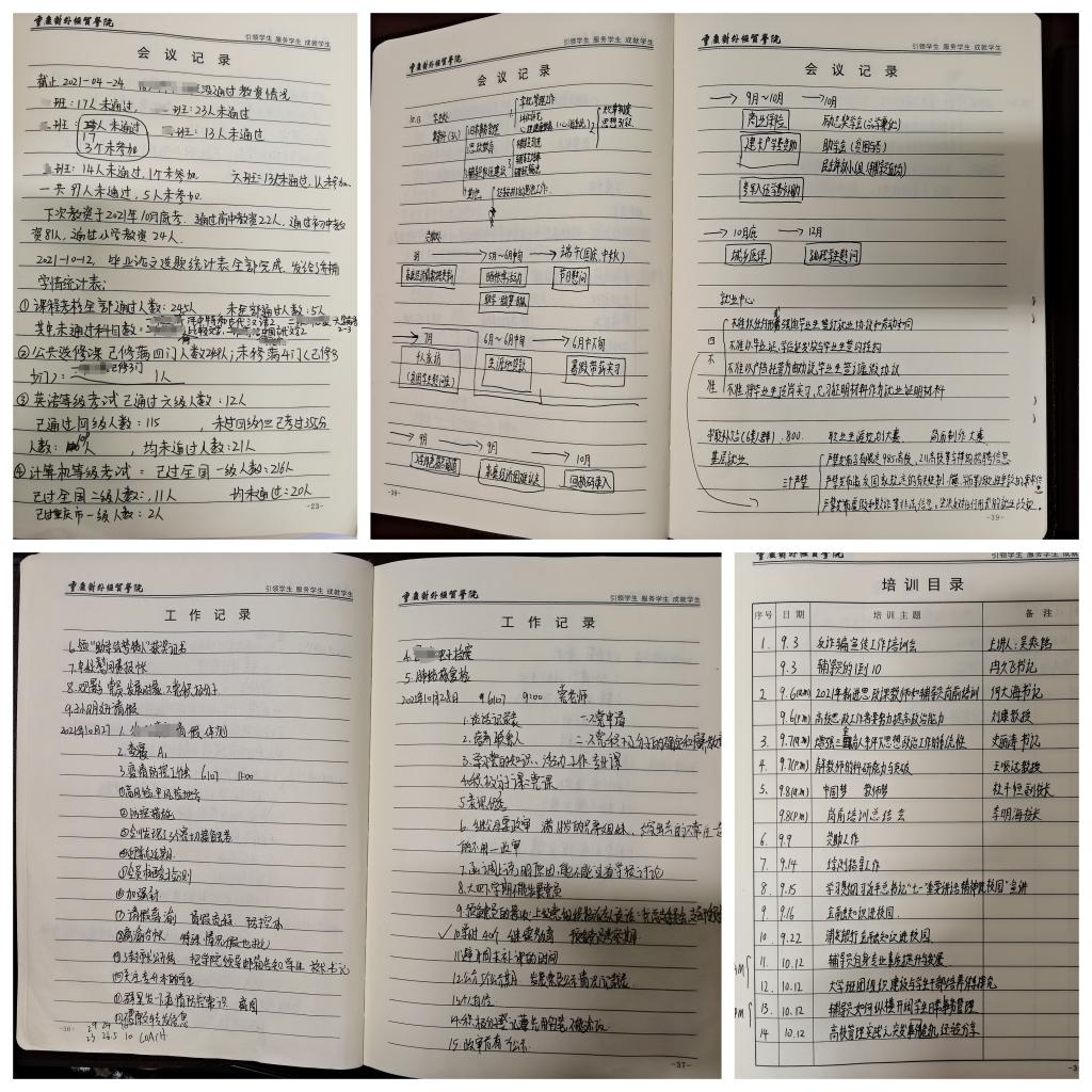 图为合川校区文创学院辅导员工作记录