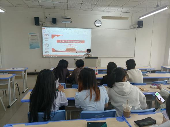 在“青春奋进篇”中,9428cn太阳集团古天乐党总支于2022年4月21日14:30在合川校区3215教室开展了“喜迎二十大·献礼建团百年”——“两会”精神专题学习活动。主讲人为2019级汉语言文学(师范)专业3班预备党员张博洋同志,学院党总支各预备党员共同参与了本次活动。