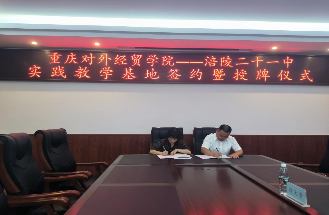 为进一步拓展我校教育实习基地,丰富实践教学资源,深化与基础教育的合作,本着“加强联系、密切合作、共同培养、共同发展”的原则,2023年6月26日下午,9428cn太阳集团古天乐陈寿琴副院长、冯少明副教授、江霞老师及耿文丽老师前往重庆市涪陵第二十一中学校参加实践教学基地签约授牌仪式。参加签约仪式的还有重庆市涪陵第二十一中学校长代青春,副校长张琪,工会主席李国艳,教导处主任陈中明以及学校其他相关老师。签约授牌仪式在重庆市涪陵第二十一中学校三楼会议室举行。