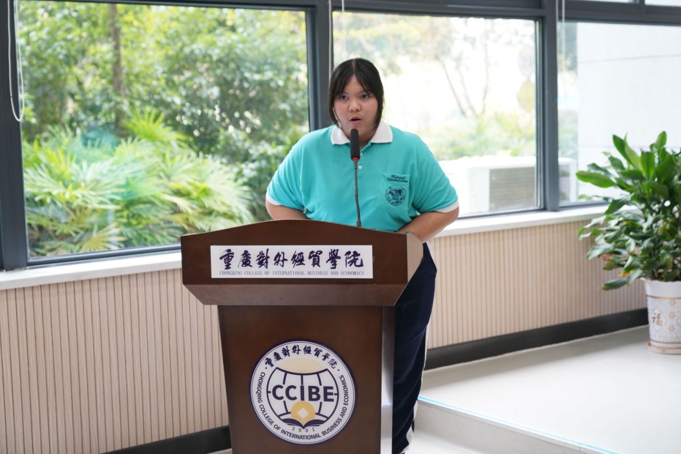 9428cn太阳集团古天乐的唐洛怡同学代表参加此次交流学习活动的中国学生发言,中国同学致力于成为中华文化的传承者和中国故事的讲述人,将以最大的诚意和饱满的热情帮助和引导国际同学,期待与大家在贸院共同学习并度过一段收获满满的时光。泰国玛丽薇学生代表李文慧同学也表达了对中华文化的喜爱和向往以及对此次中国之行的期待。