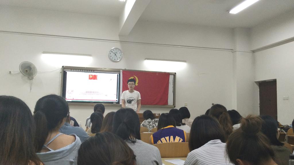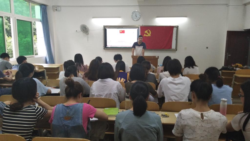为了践行“两学一做”常态化教育,文学与新闻学院学生二支部于2018年5月17日下午16:30在6104开展了以 “在党言党、在党爱党——深入学习贯彻习近平总书记在北京大学师生座谈会上重要讲话精神”的专题学习活动,此次专题学习由学生二支部书记帅爱军同志主持,学生二支部全体党员和近期发展对象参与,会议主要内容是预备党员徐香玲同志讲述学习习近平总书记在北京大学师生座谈会上重要讲话精神的心得,其他同志自由分享交流学习讲话精会议。