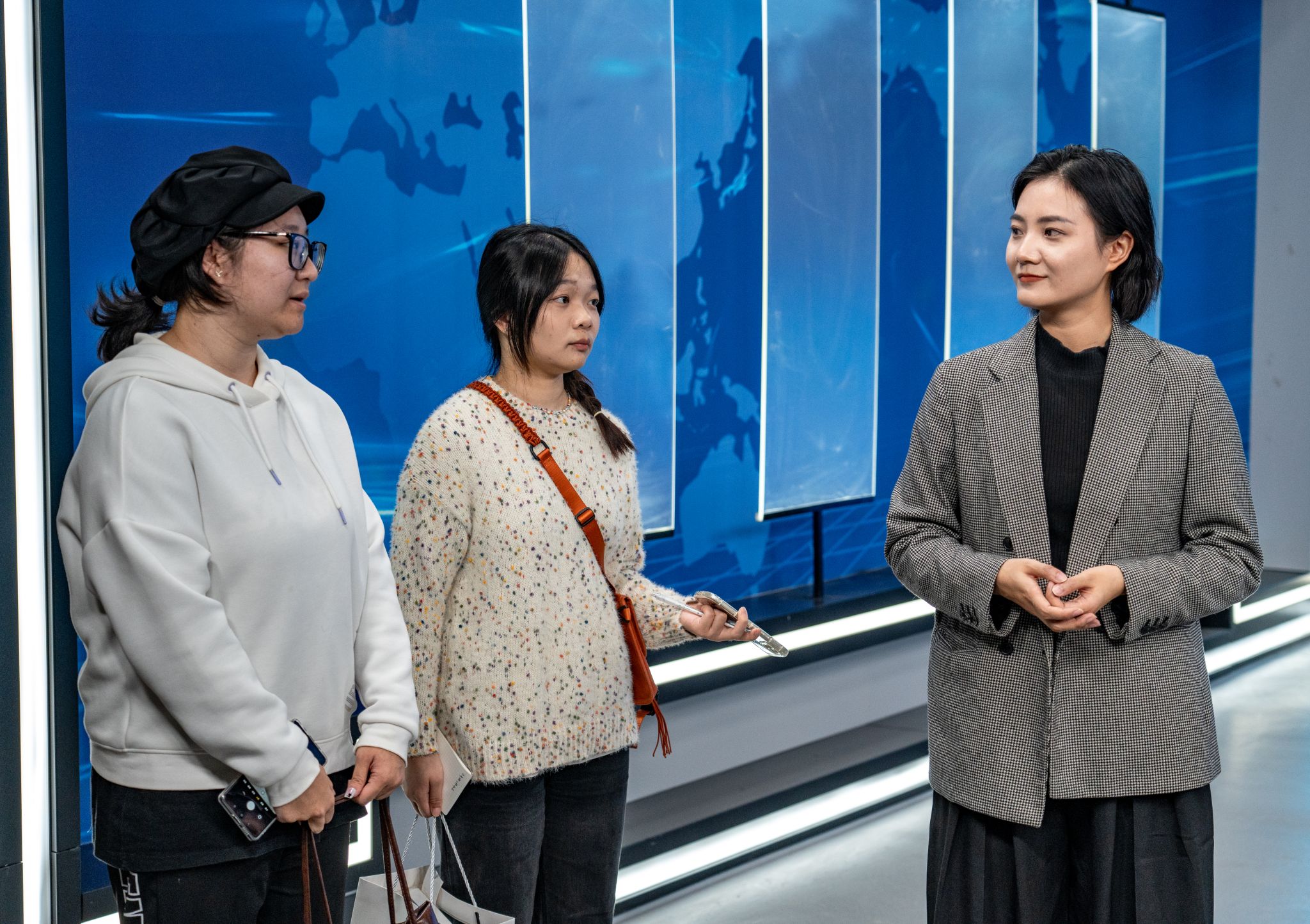 活动伊始,融媒体中心新媒体编辑蒲娅娜为学生介绍合川融媒体中心的媒体工作日常,引导参观《合川新闻》节目演播厅、专题节目全景演播厅、《今日合川》编辑部等各个功能区,了解不同新闻岗位的工作职责。学生认真聆听,并积极地在提问环节与各部门新闻工作人员交流学习。