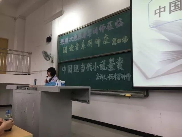 首先,陈老师以幽默诙谐的语言风格向在场的各位同学问好,将现场的气氛推向了高潮。紧接着,一幅幅熟悉作家的照片映入眼帘,陈老师带着现场的同学们一起走进了小说的世界。陈老师着重强调,鉴赏中国现当代小说,一定要掌握常见的几种方法:知人论世法、比较法和文本细读法。掌握了这几种方法,想要鉴赏一部小说也就不在话下啦!