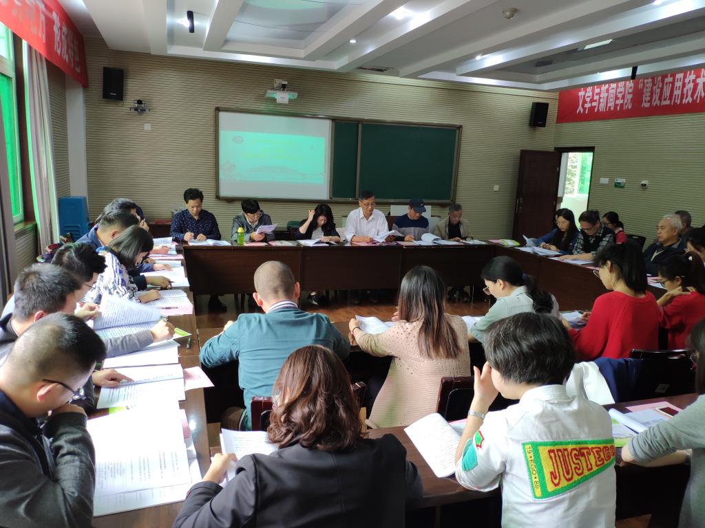 为贯彻落实全国教育大会精神,推进文学与新闻学院特色学院建设,“建设应用技术大学文学学科的地位与使命”教育思想大讨论暨特色学院建设研讨会于10月11日下午14:30在8203教室顺利召开,会议由文学与新闻学院院长林健主持,全院教职工参加会议。