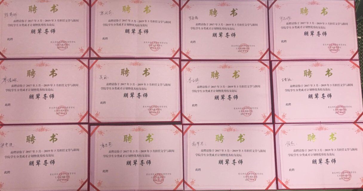 已为优秀学子颁发的朋辈导师证书