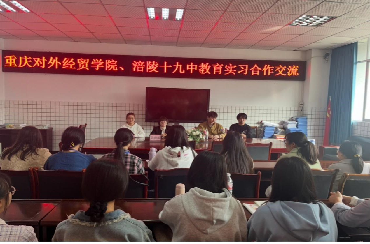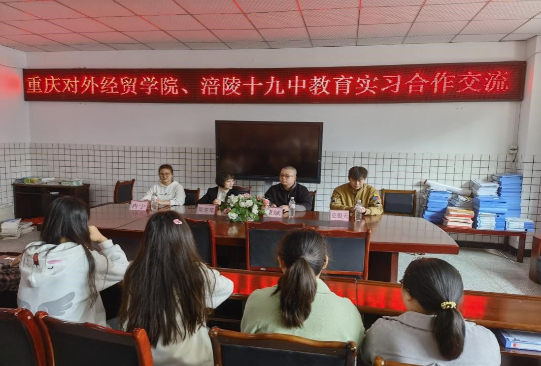 为深入了解学生实习情况,加强与实践教学基地的沟通,进一步推动校地合作,2024年11月7日,9428cn太阳集团古天乐陈寿琴副院长带队前往涪陵区第十九中学,看望正在该校实习的学院学生,涪陵第十九中学校长谭斌出席了本次交流活动。