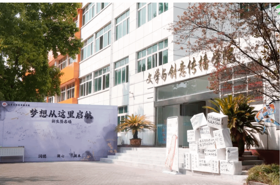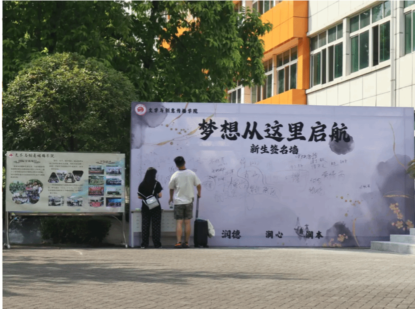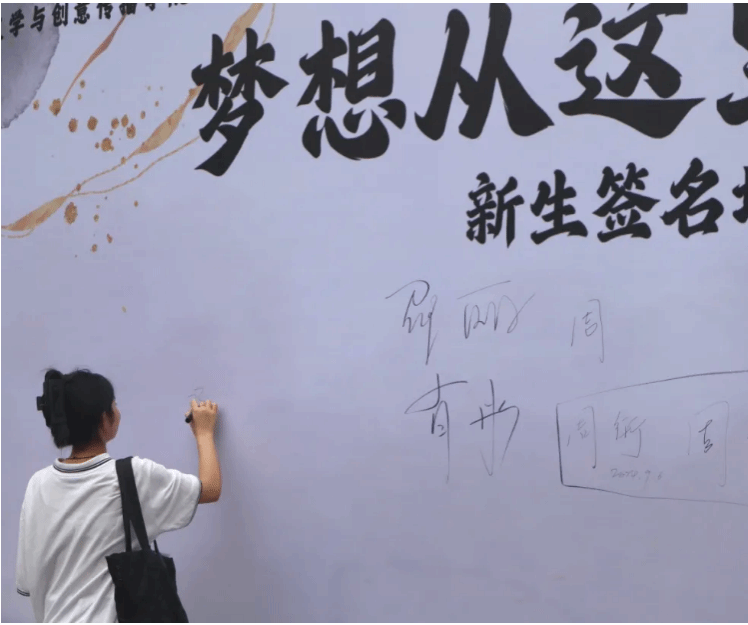 第六教学楼门前,来自五湖四海的文创学子满怀着期待与憧憬,在新生签名墙上书写下印记,留下与校园的第一张合照,时间定格在那一刻,而梦想从这里起航。