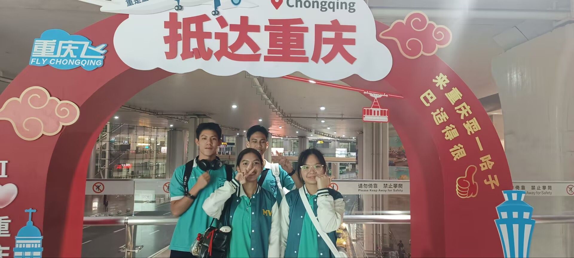 2024年10月13日晚,泰国玛丽薇学校校董率领该校四十七名学生以及九名教师顺利抵达重庆。我校国际交流合作处(国际学院)刘用院长携我院国际交流与合作中心工作人员到机场迎接。北京时间晚上七点,双方成功会面。迎客自远方,乐盈我心田,我院国际交流与合作中心接机人员向泰国师生表达了热情的问候,并为老师们献上了欢迎的手工花朵。