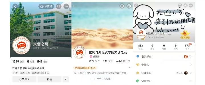 (一)运营四个平台:抖音、微博、QQ、微信公众号,定期推送推送节假日推文,宣传学院活动,展示文创学子风采。