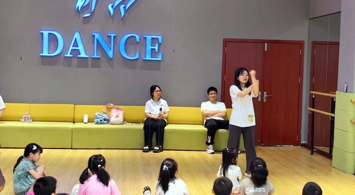 实践团组织开展了课前肢体舞蹈活动,教授同学们舞蹈肢体动作、体态养成方式。实践团负责本次课程的成员,正和孩子们一块舞动手脚,共同谱写一篇篇舞蹈和音乐的华章。在这里,同学们认真聆听小老师的讲解,随着一声声有趣又具记忆点的指令“小手拍左肩”、“左手找右脚”,让他们在舞蹈中伸展四肢、释放能量,感受舞蹈的魅力与乐趣。