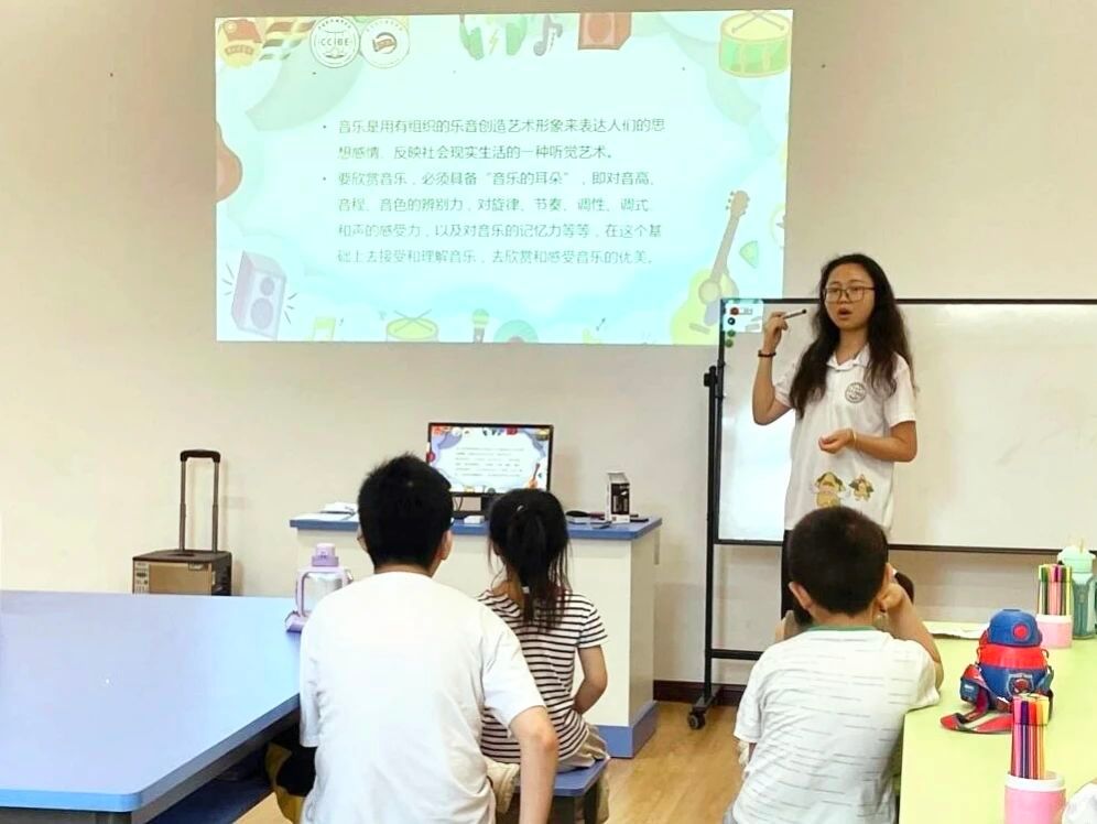在音乐课堂上,实践团成员以简单易学的方式向同学们教授诸如乐谱的读法、音符的节奏等一些基础的音乐知识,让他们近距离接触和感受音乐的魅力。同学们聚精会神地听讲,跟着节奏唱起了儿歌。整个教室弥漫着音乐的氛围,孩子们的笑声和欢呼声更是不绝于耳。