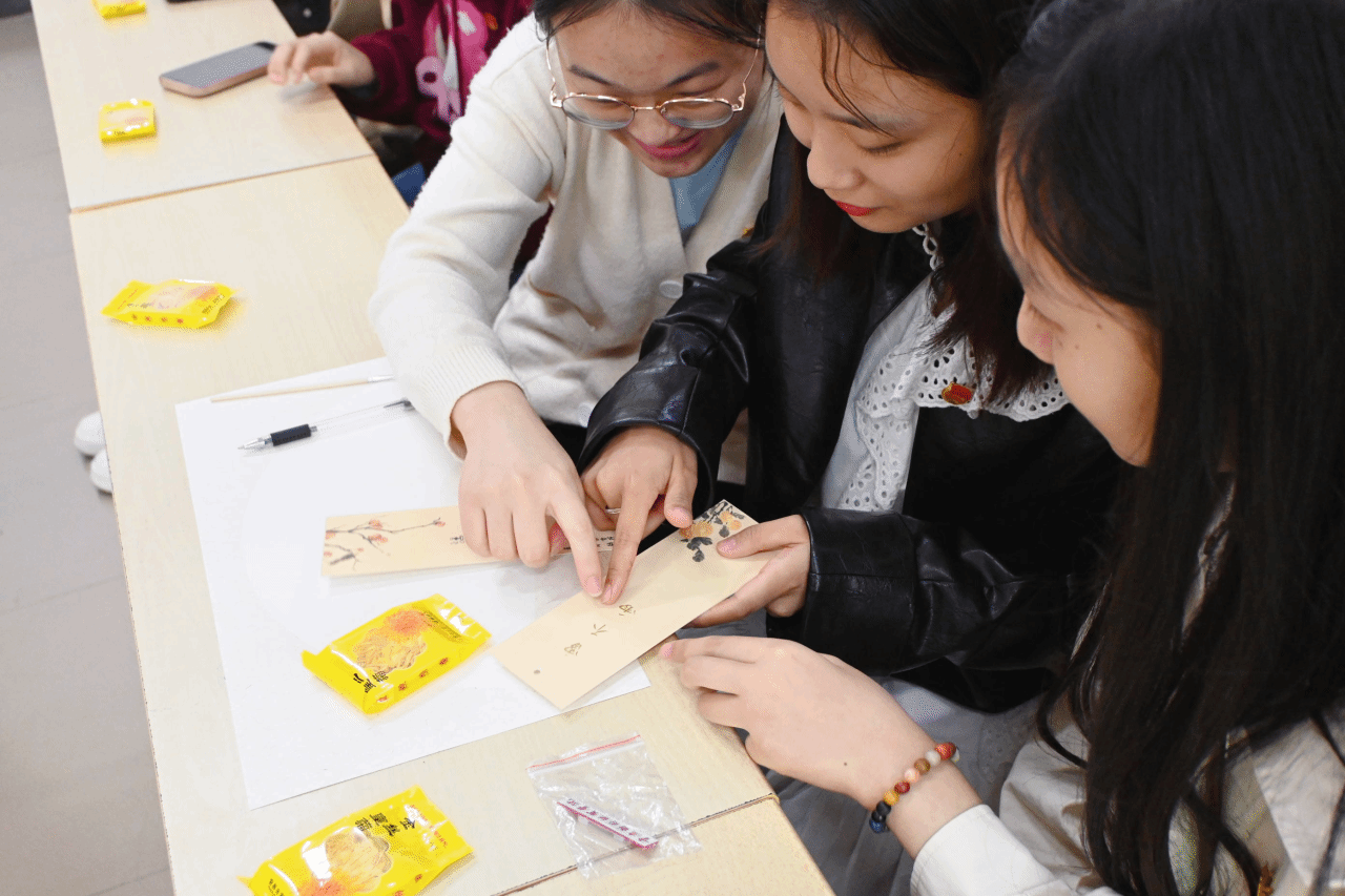 活动最后,通过支部成员集体投票,票选出最受欢迎的霜降扇面作品。团支部书记徐杨为获胜小组颁发了桂花重阳糕等奖品。并向大家介绍了传统节日凝聚了中华民族千秋万代浓浓情思。活动接近尾声的时候,团支部书记徐杨组织各小组成员在霜降当天为家中亲人编辑发送祝福信息,并呼吁大家增强文化自信,从自身做起。