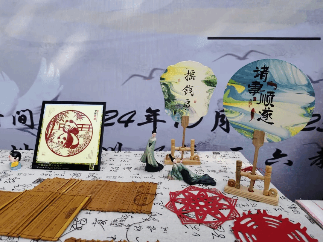 剪纸、国画、书法、水墨折扇、泥塑人偶等传统艺术作品的展示,直观地展现出中国优秀传统文化的博大精深。