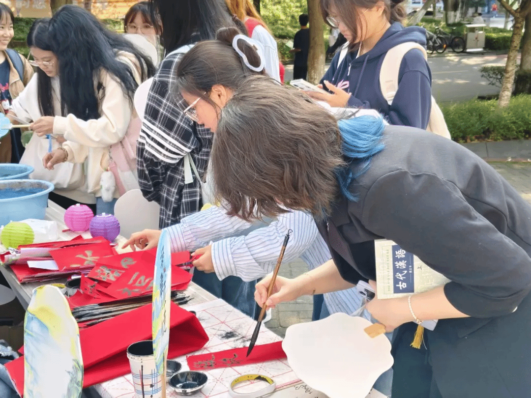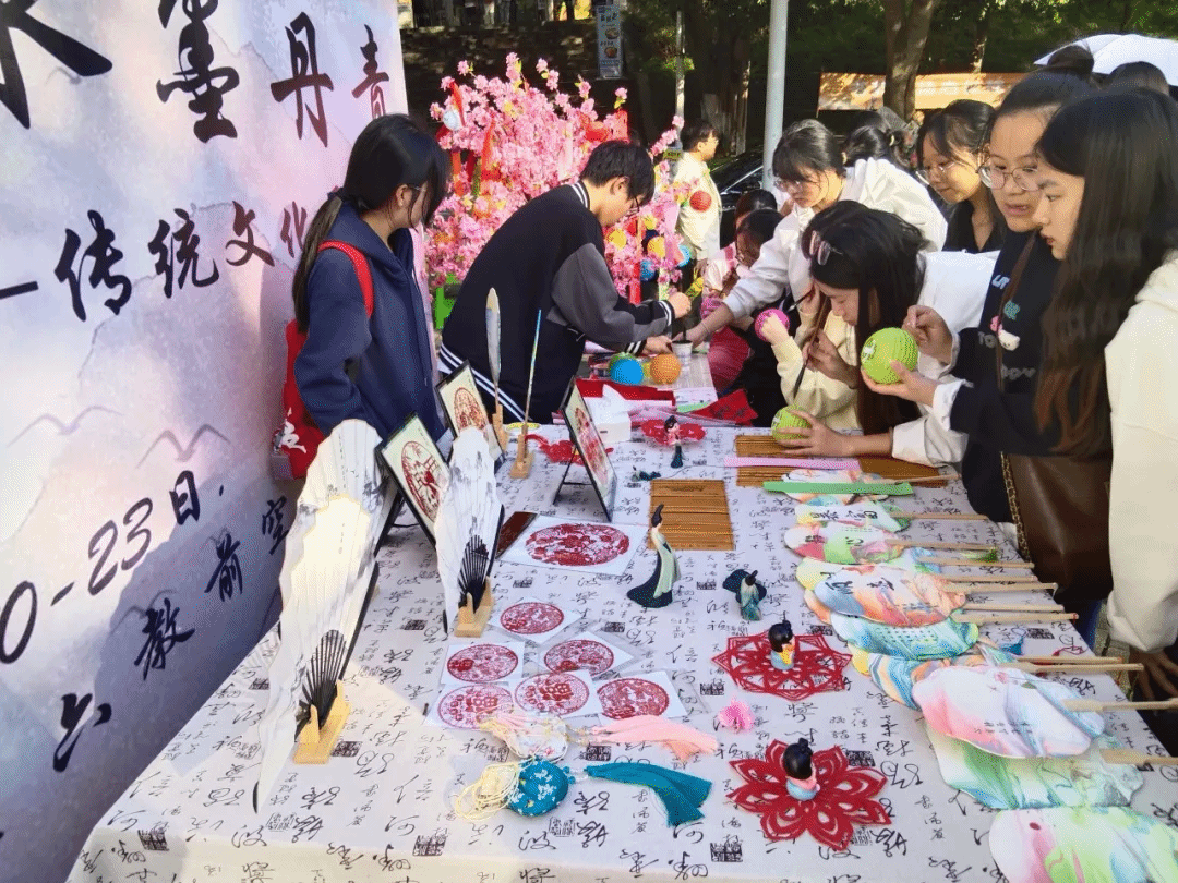 展览现场,学院为师生们准备了丰富多样的传统艺术作品展示,还设置了各种有趣的传统文化体验活动,在社团部工作人员的引导下,同学们热情洋溢,积极参与,充分体验活动。