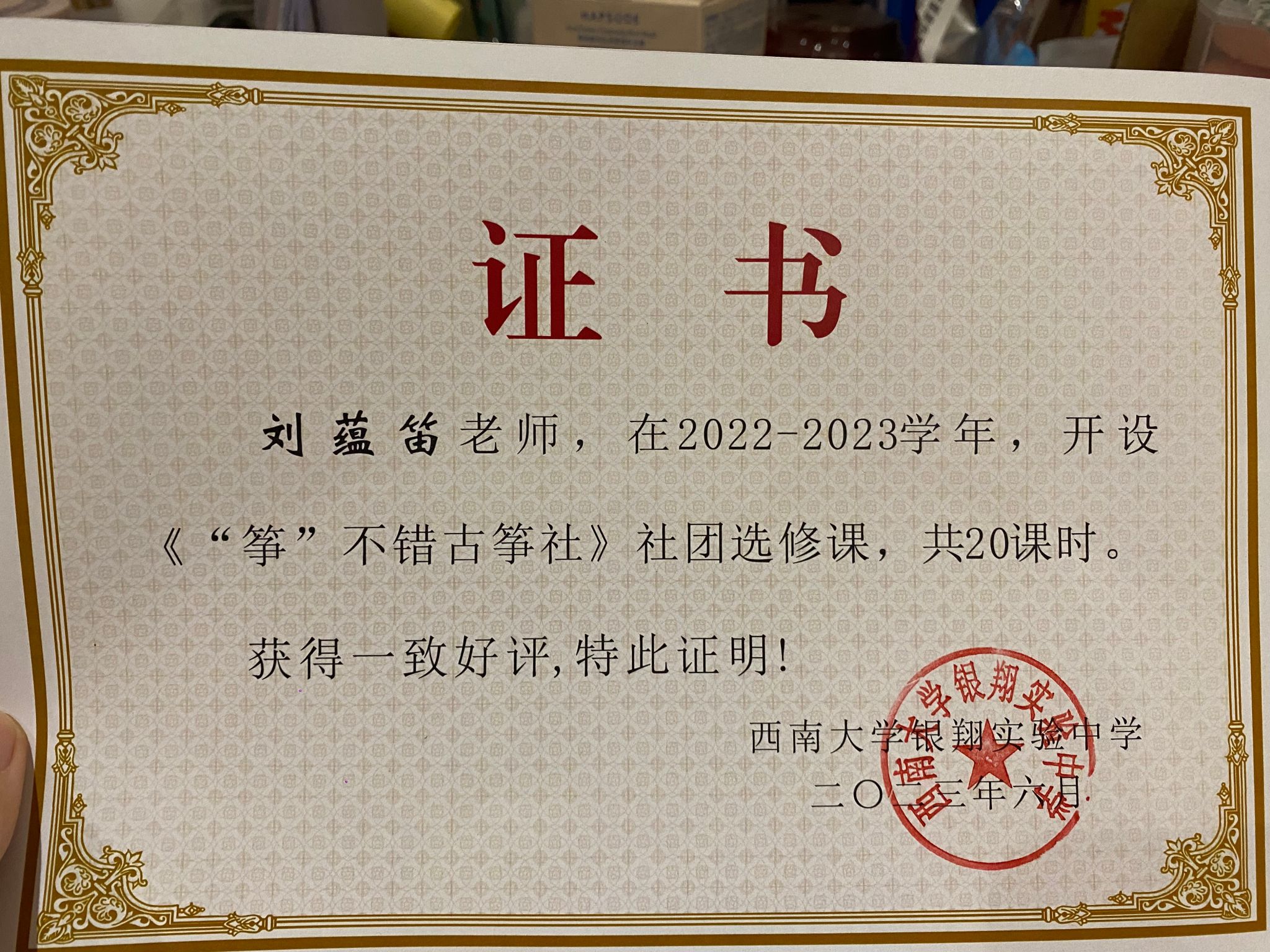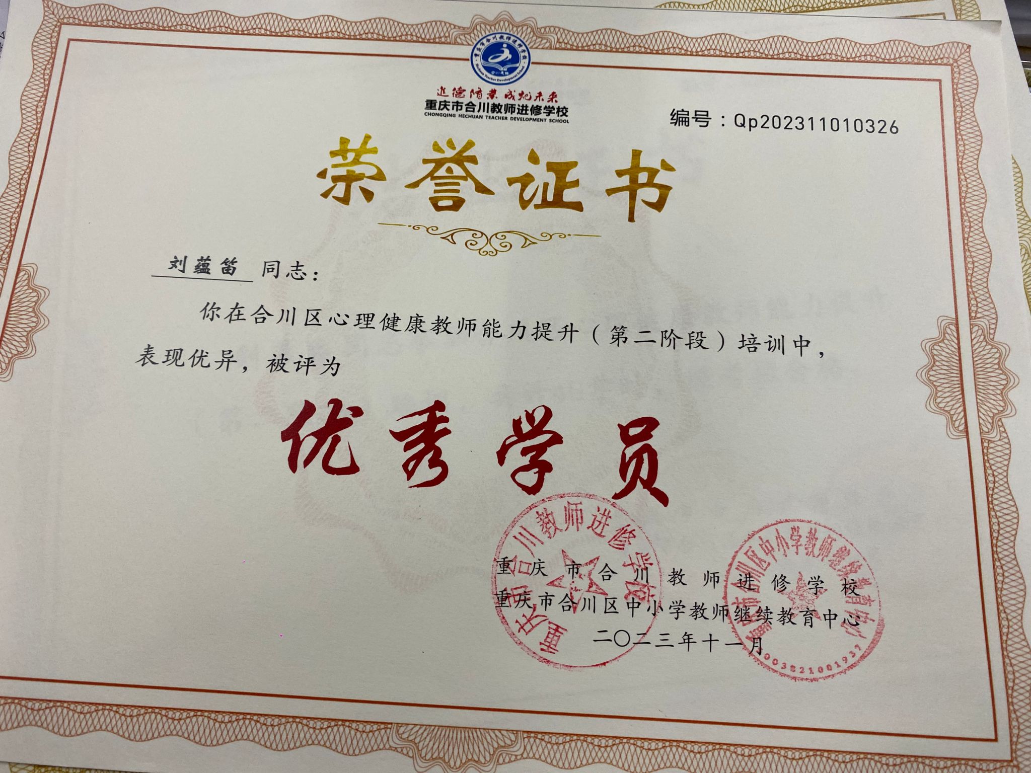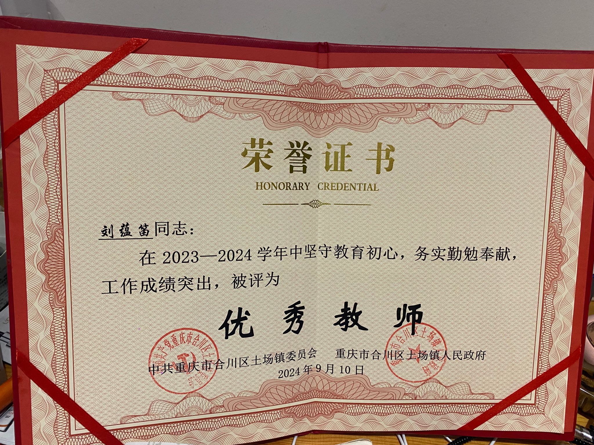 图为刘蕴笛老师被评为西南大学附属中学优秀教师